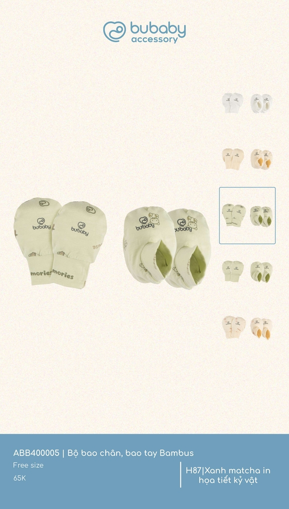 BU S10 - Bộ bao chân, bao tay Bambus - ABB400005 - Xanh matcha in họa tiết kỷ vật - FS - SS25.T3A
