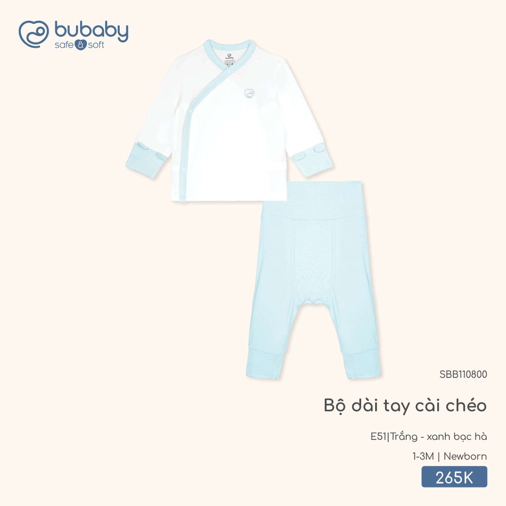 BU - Bộ dài tay cài chéo - SBB110800 - Trắng + xanh bạc hà - Newborn - SS26.T2A