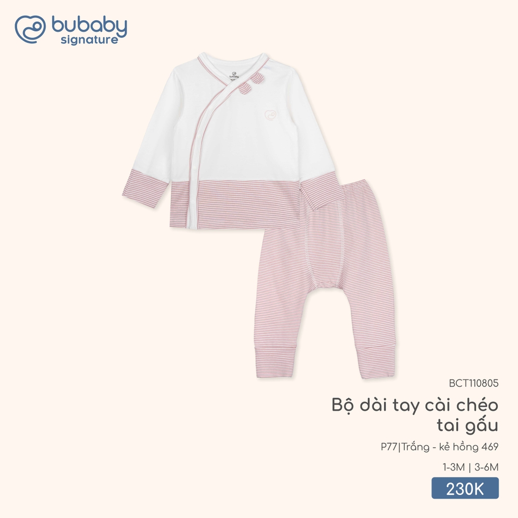 BU - Bộ dài tay cài chéo tai gấu BCT110805 - Trắng - kẻ hồng 469 - Mỏng - SS25.T10C