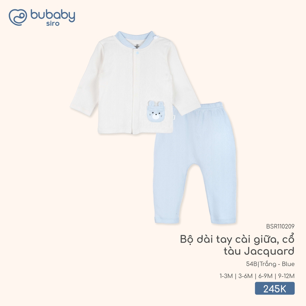 BU - Bộ dài tay cài giữa, cổ tàu Jacquard BSR110209 - Trắng - Blue - Trung - SS25.T10B