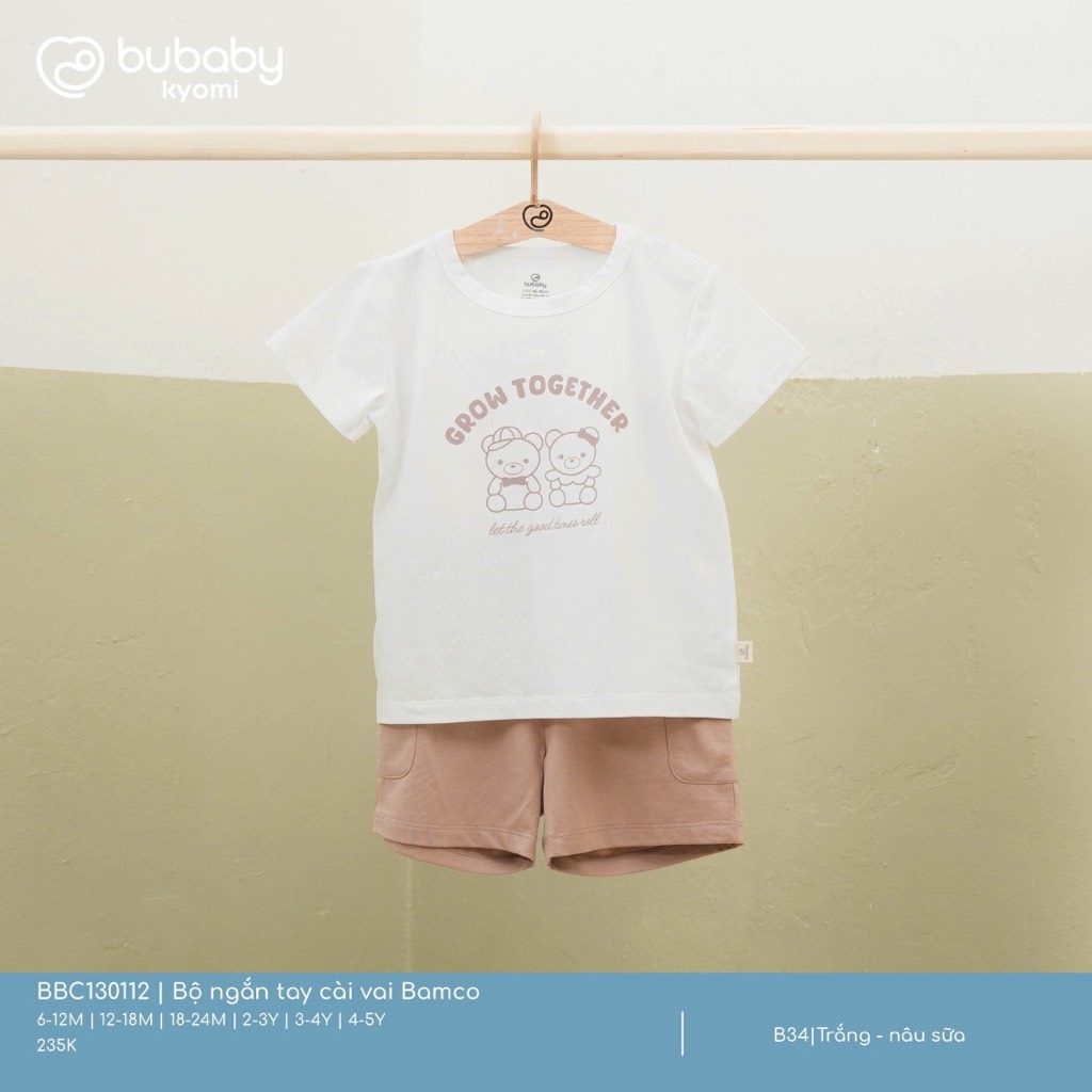 BU - Bộ ngắn tay cài vai Bamco - Trắng - nâu sữa - SS25.T1A