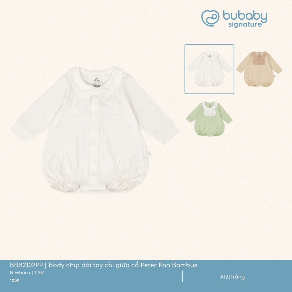 BU - Body chip dài tay cài giữa cổ Peter Pan Bambus - Trắng - SS25.T2A