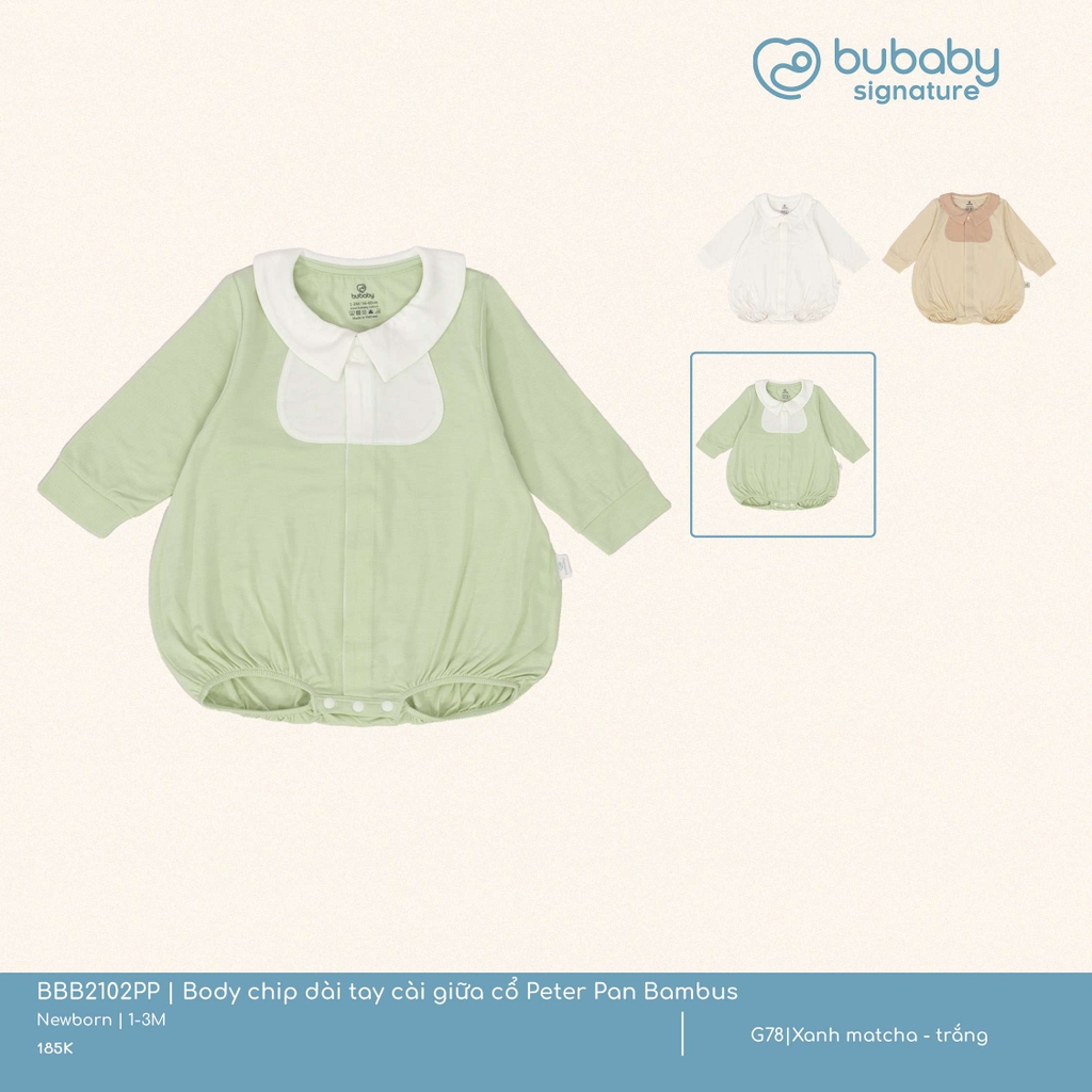 BU - Body chip dài tay cài giữa cổ Peter Pan Bambus - Xanh matcha - trắng - SS25.T2A