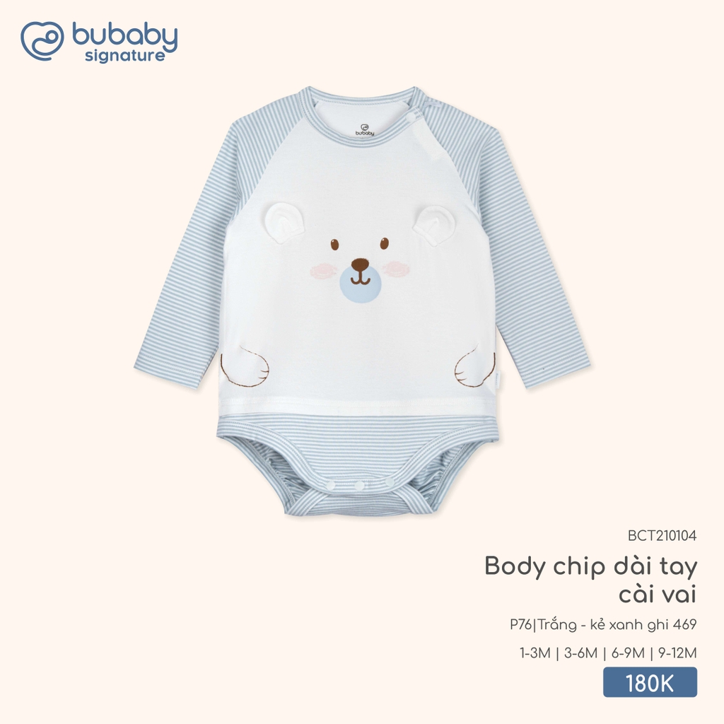 BU - Body chip dài tay cài vai BCT210104 - Trắng - kẻ xanh ghi 469 - Mỏng - SS25.T10C