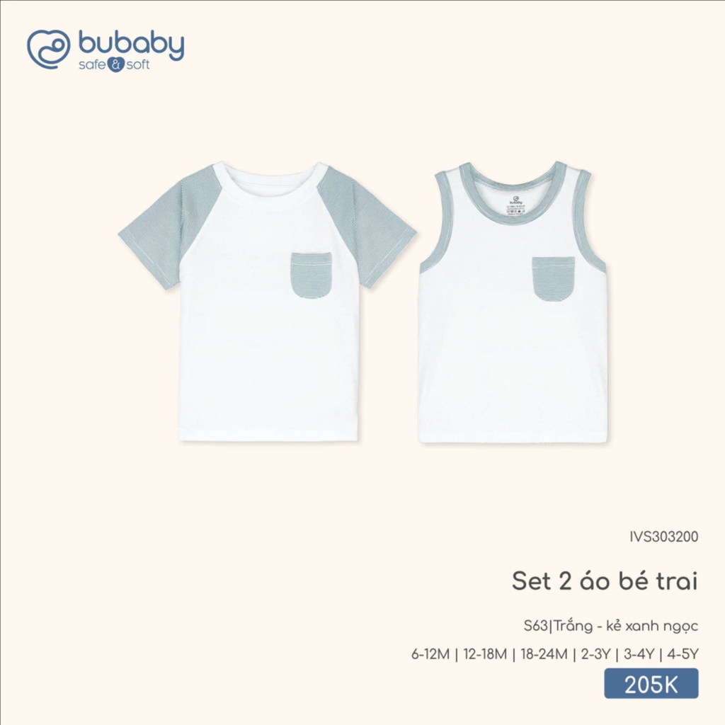 BuBaby - Set 2 áo bé trai - Trắng + kẻ xanh ngọc - 12-18M - SS26.T3A