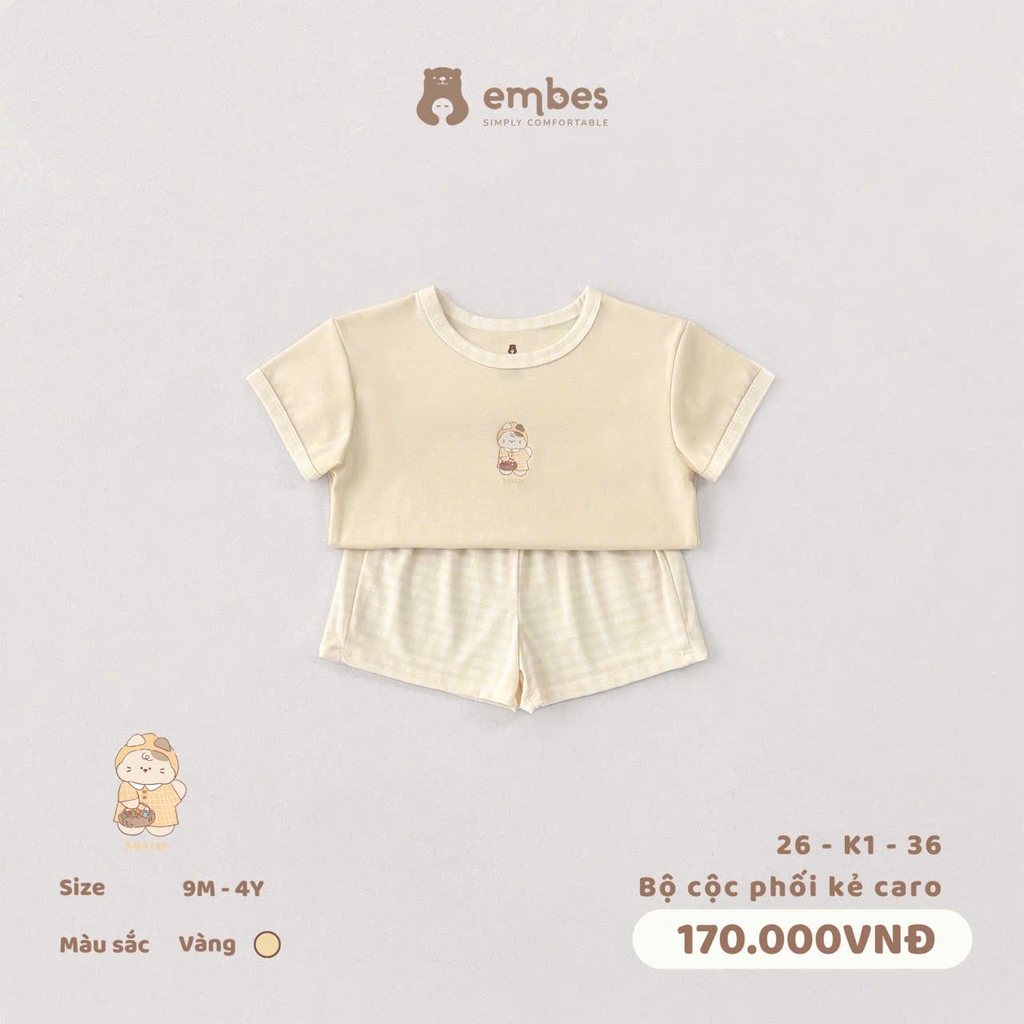 EMBES - Bộ cộc phối kẻ caro - 26-K1-36 - Vàng - 18-24M