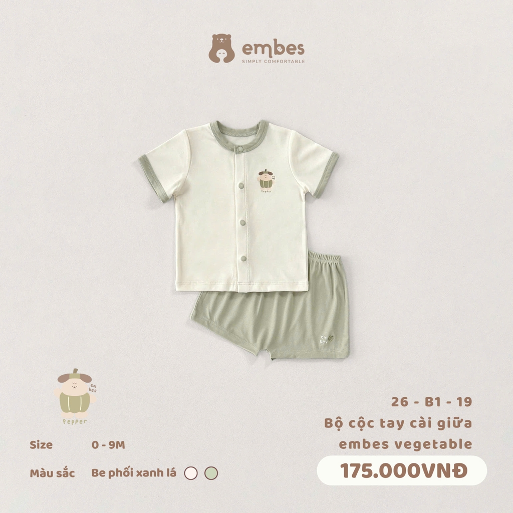 EMBES - Bộ cộc tay cài giữa embes vegetable - 26-B1-19 - Be Xanh - 0-3M - SS26.T3C