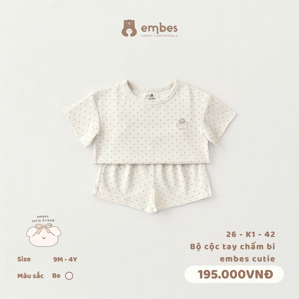 EMBES - Bộ cộc tay chấm bi embes - 26-K1-42 - Be - 9-12M -SS26.T4A