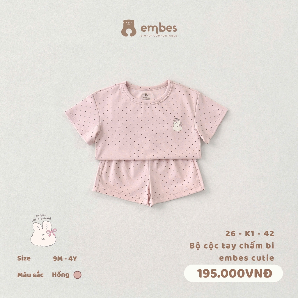 EMBES - Bộ cộc tay chấm bi embes - 26-K1-42 - Hồng - 2-3Y -SS26.T4A
