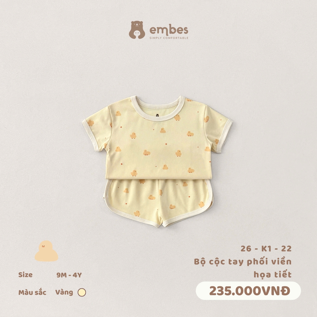 EMBES - Bộ cộc tay phối viền hoạ tiết - 26-K1-22 - Vàng - 2-3Y - SS26.T4E