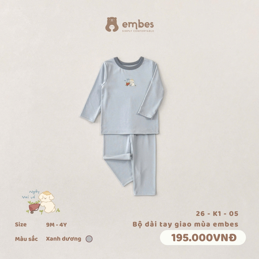 EMBES - Bộ dài tay giao mùa embes - 26-K1-05 - Xanh dương - 2-3Y -SS26.T4A