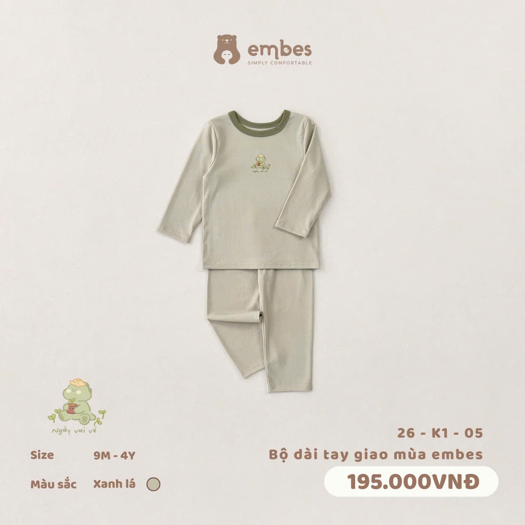 EMBES - Bộ dài tay giao mùa embes - 26-K1-05 - Xanh Lá - 9-12M