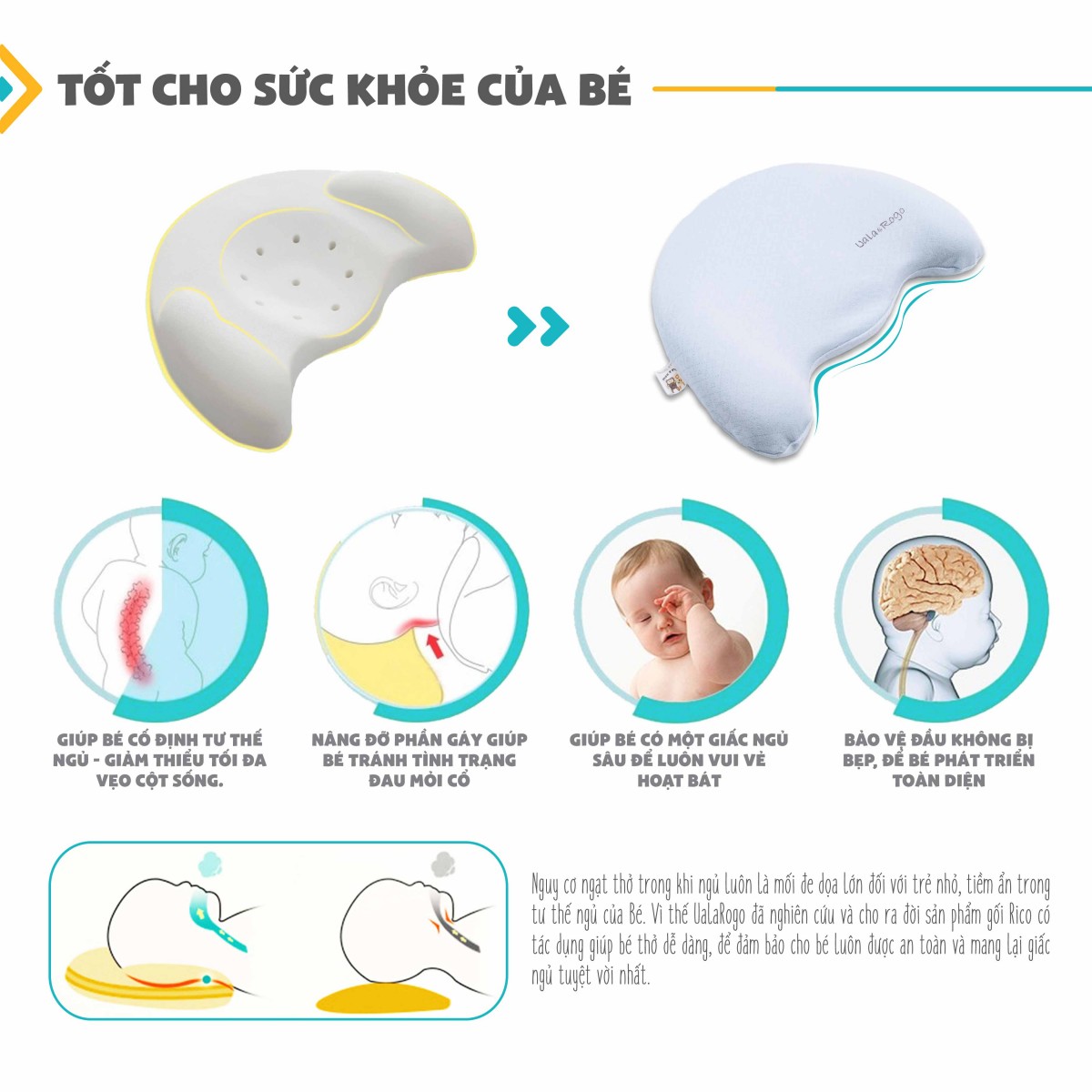 Sử dụng gối UalaRogo cho giấc ngủ chính là sự đầu tư và thông minh bảo vệ sức khỏe và sự phát triển của bé
