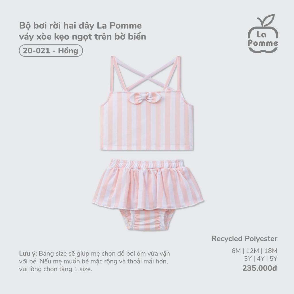 LP - Bộ bơi rời hai dây La Pomme váy xòe kẹo ngọt trên bờ biển - Hồng - 3-4Y - SS26.T4A