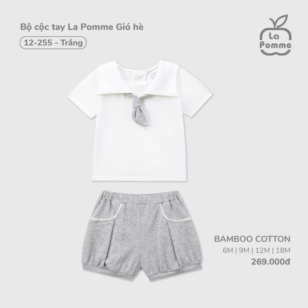 LP - Bộ cộc tay La Pomme chào ngày mới vui nhộn - Trắng - SS25.T9B