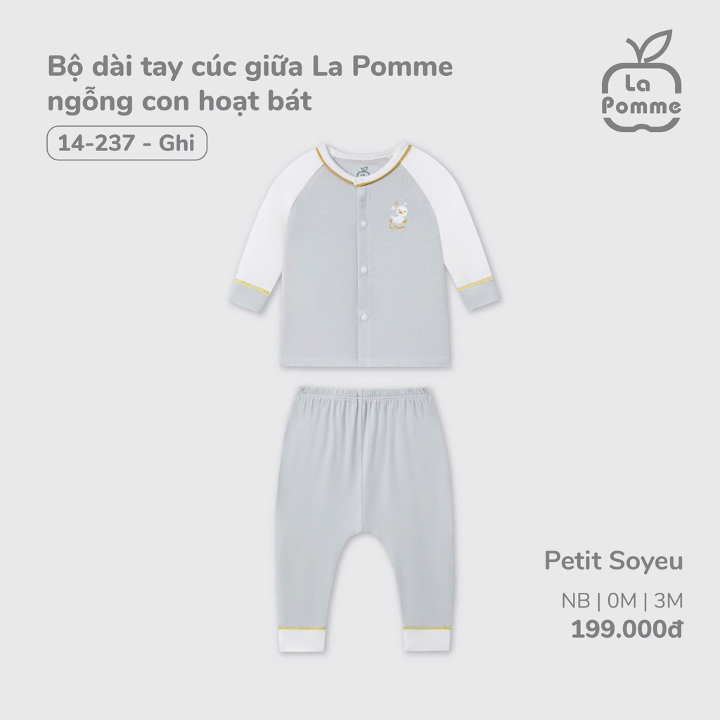 LP - Bộ dài tay cúc giữa La Pomme ngỗng con hoạt bát - Ghi - SS25.T3A