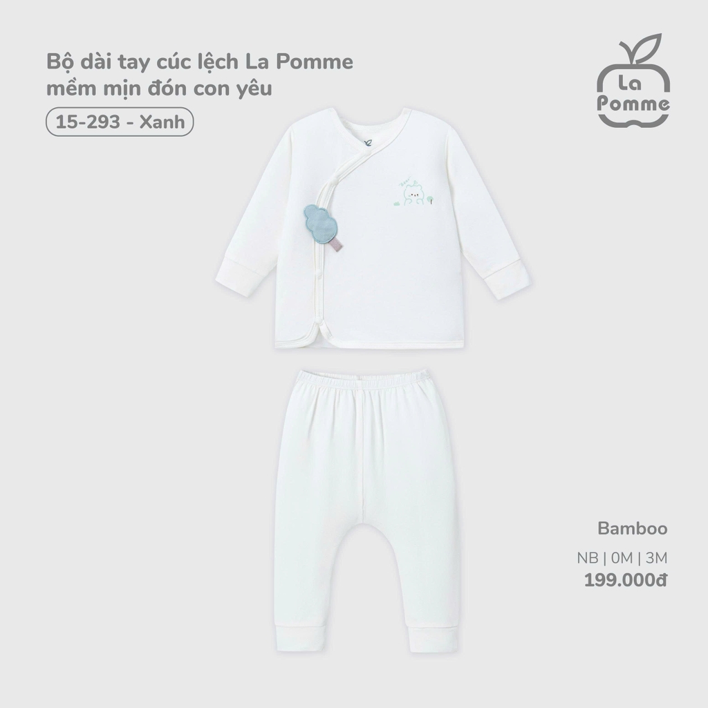 Bộ dài tay cúc lệch La Pomme mềm mịn đón con yêu - Newborn Xanh: