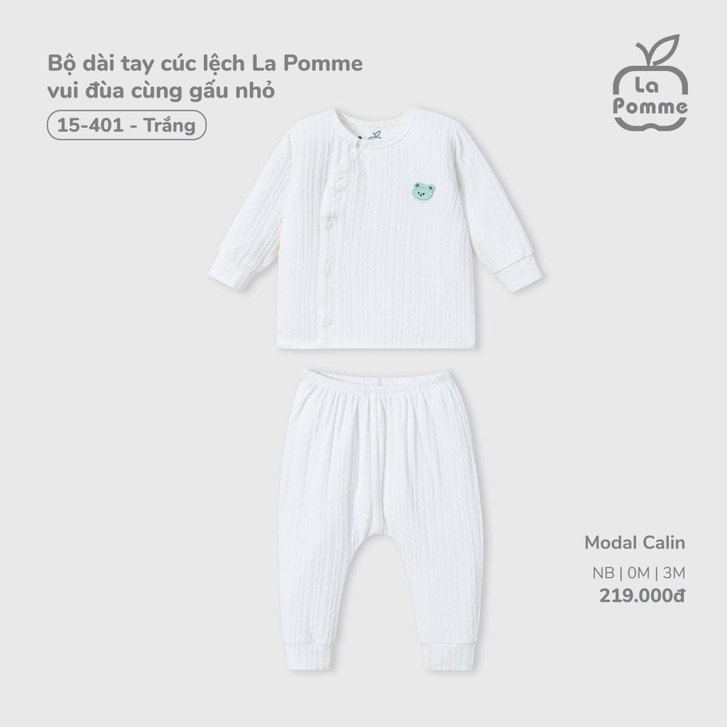 LP - Bộ dài tay cúc lệch La Pomme vui đùa cùng gấu nhỏ - Trắng - SS25.T10B