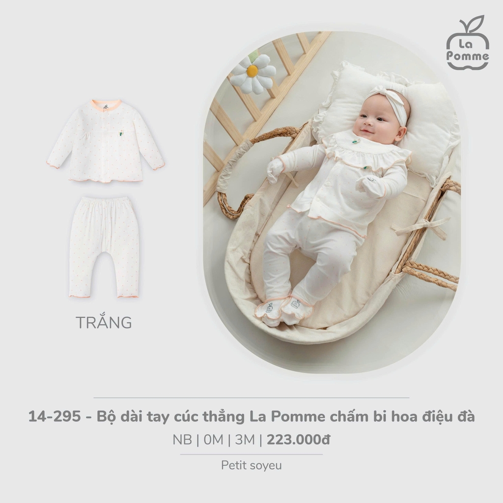 LP - Bộ dài tay cúc thẳng La Pomme chấm bi hoa điệu đà - Trắng - 3-6M - SS26.T3B