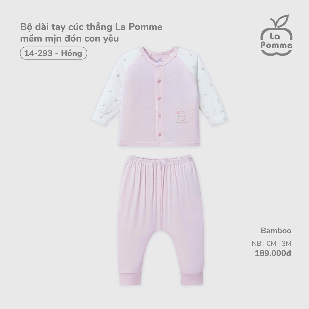 LP - Bộ dài tay cúc thẳng La Pomme mềm mịn đón con yêu - Hồng - SS25.T11B