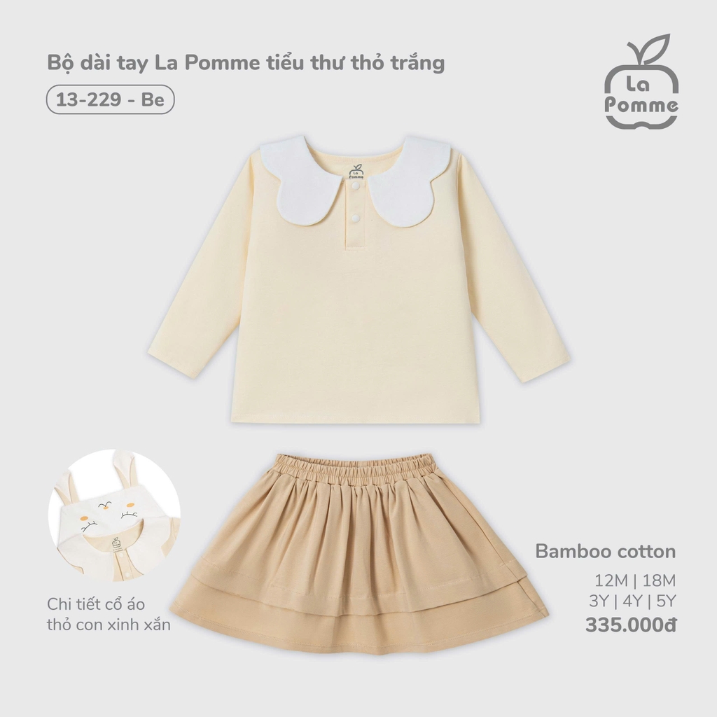 LP - Bộ dài tay La Pomme tiểu thư thỏ trắng - Be - SS25.T10B
