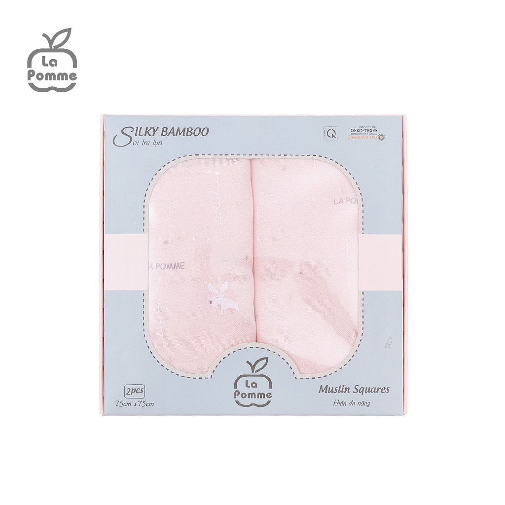 LP - K002 Set 2 khăn sữa sợi tre lụa La Pomme - 75x75cm Hươu Hồng