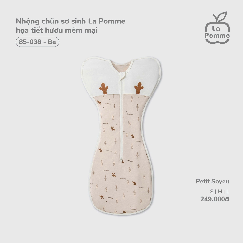 LP - Nhộng chũn sơ sinh La Pomme họa tiết hươu mềm mại - Be - S - SS26.T3B