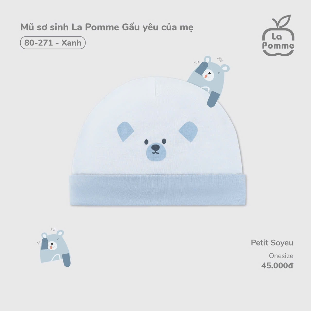 LP - Mũ sơ sinh La Pomme Gấu yêu của mẹ - Xanh - FS - SS25.T9B