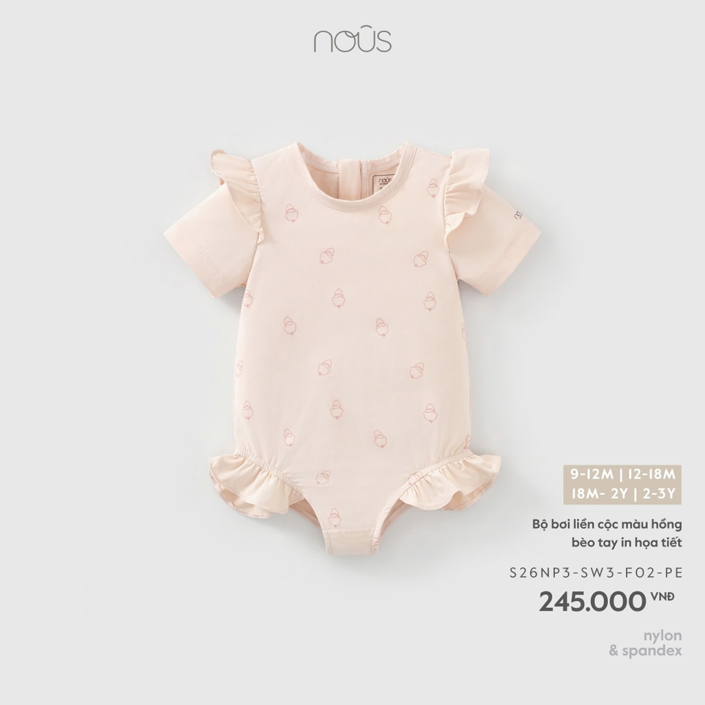 NOUS - Bộ bơi liền cộc màu hồng bèo tay in họa tiết - 18-24M - SS26.T4A0