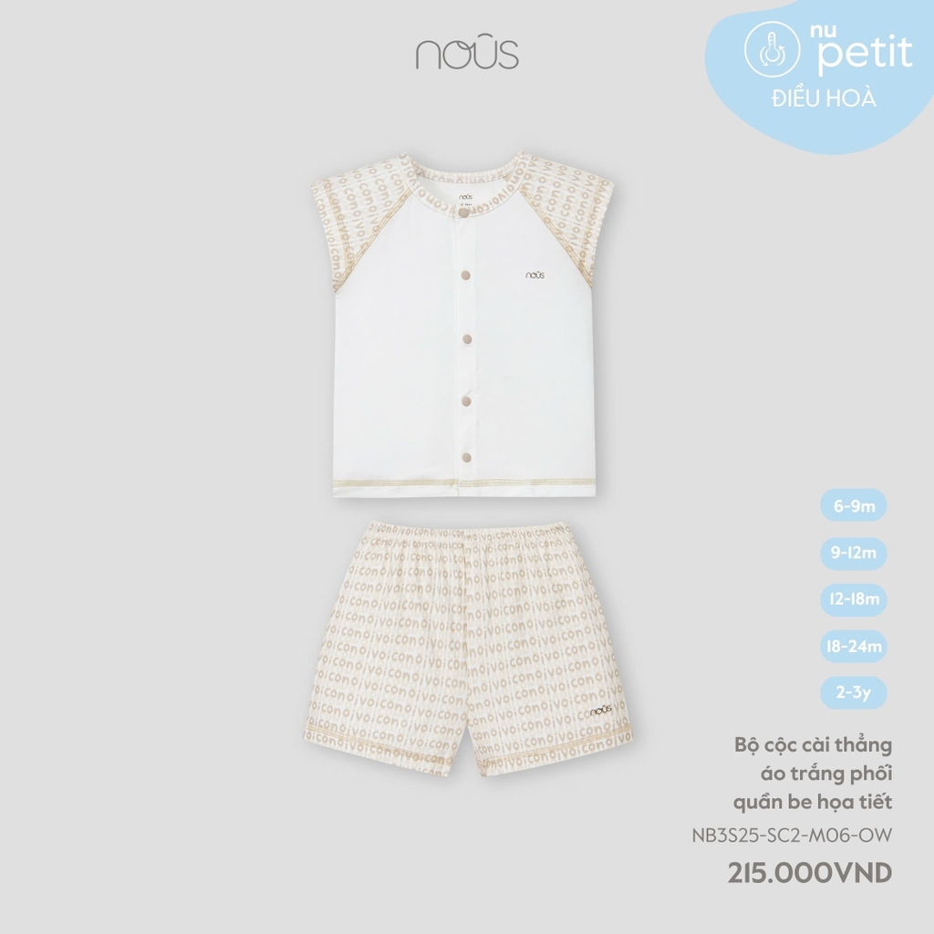 NOUS - Bộ cộc cài thẳng áo trắng phối quần be họa tiết - SS25.T7A