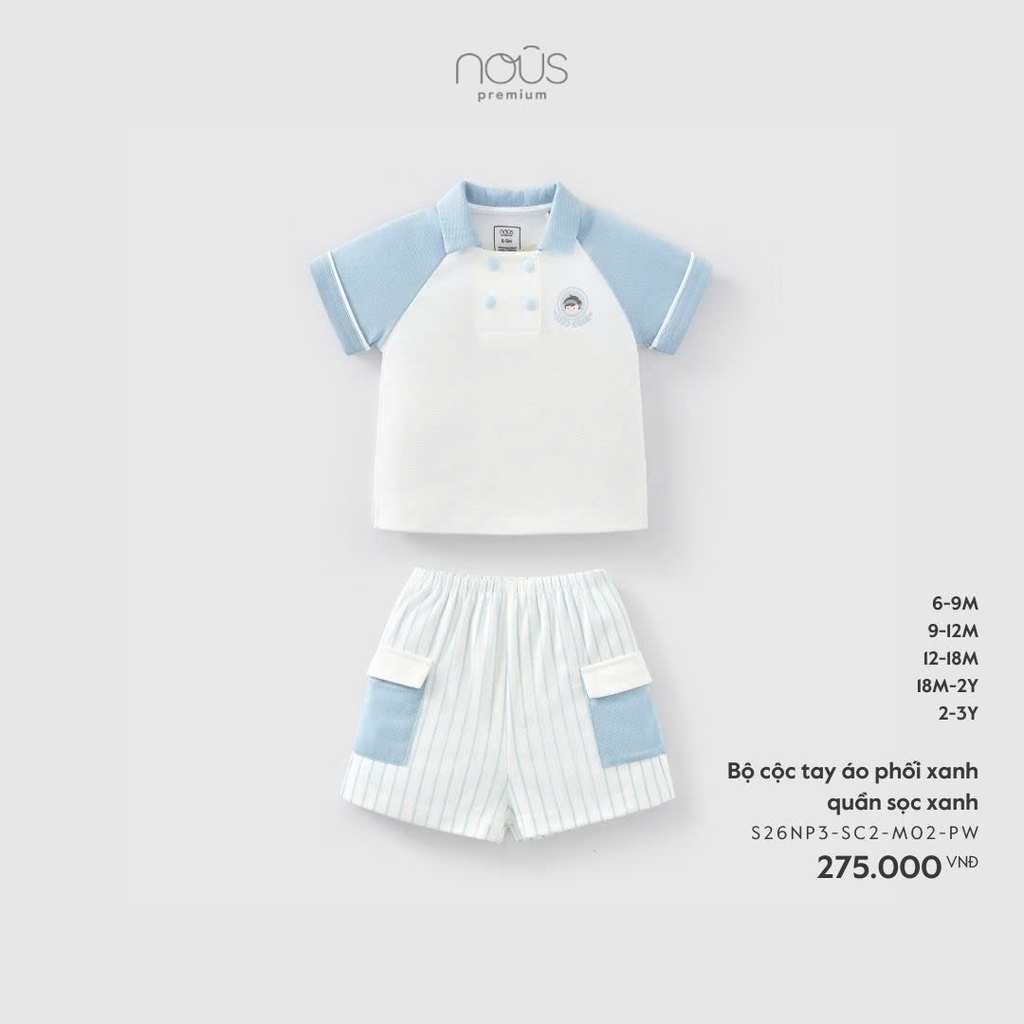 NOUS - Bộ cộc tay áo phối xanh, quần sọc xanh - 2-3Y - SS26.T3B