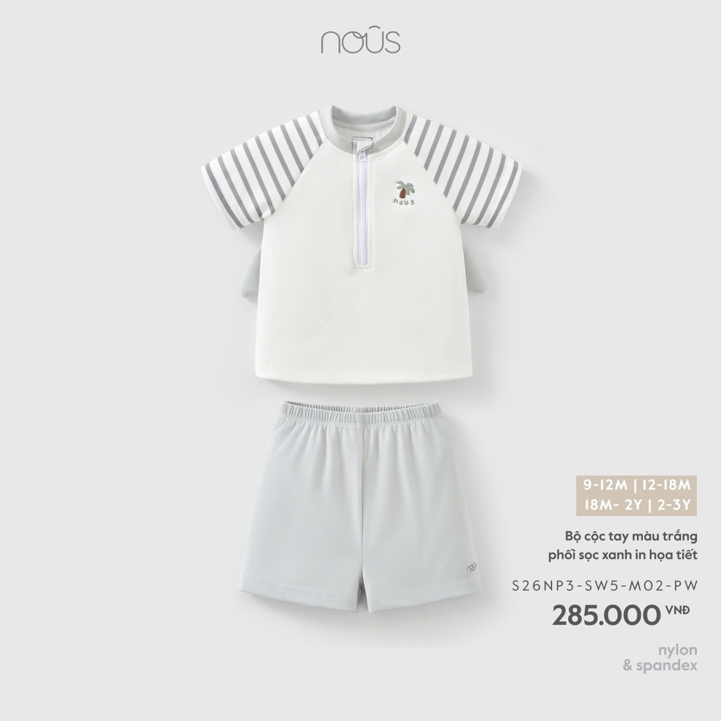 NOUS - Bộ cộc tay màu trắng phối sọc xanh in họa tiết - 18-24M - SS26.T4A0