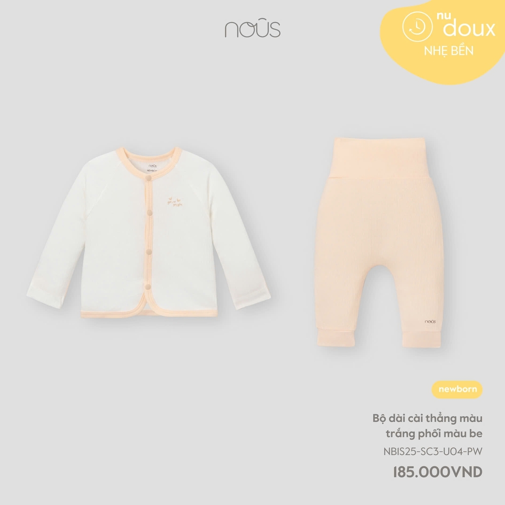 NOUS S15 - Bộ dài cài thẳng màu trắng phối màu be - Nu Doux - SS25.T3A
