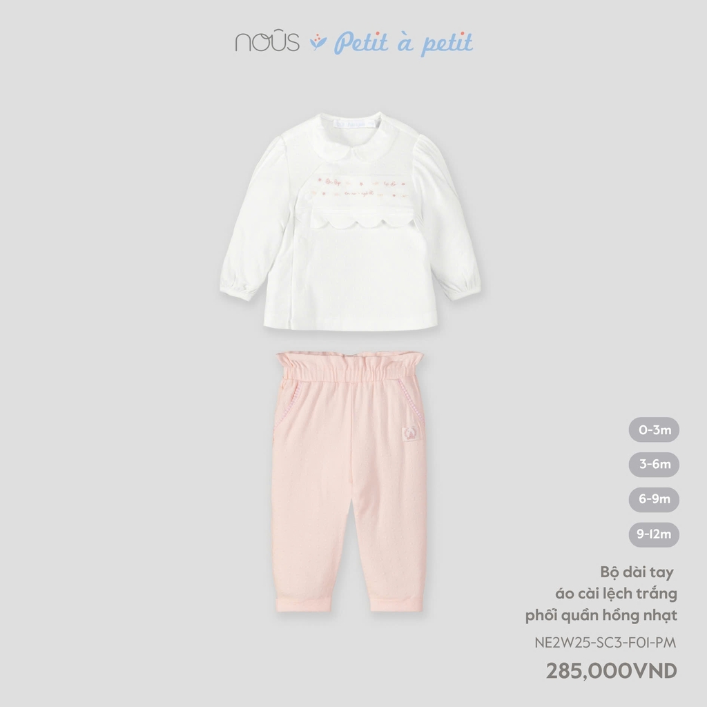 NOUS - Bộ dài tay áo cài lệch trắng phối quần hồng nhạt - SS25.T8A