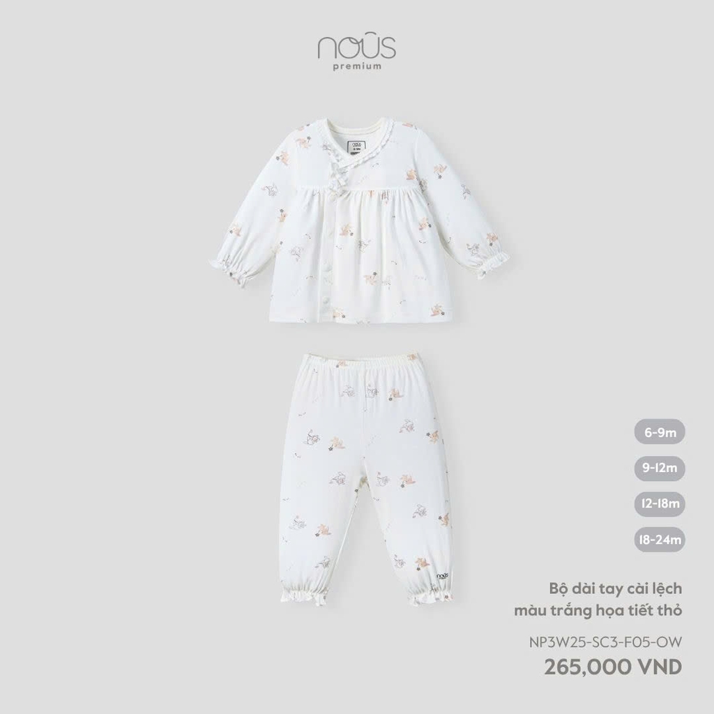 NOUS - Bộ dài tay cài lệch màu trắng họa tiết thỏ - SS25.T10A