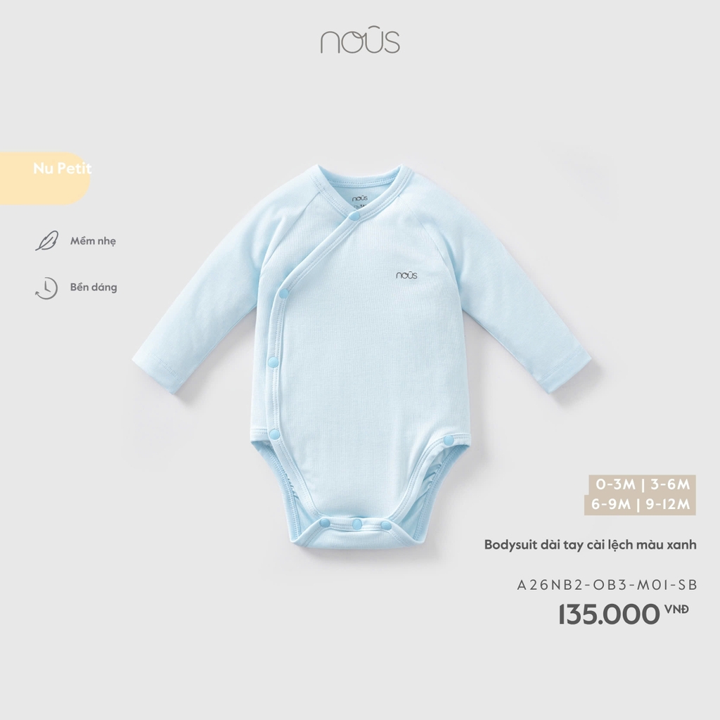 NOUS - Bodysuit dài tay cài lệch màu xanh - 0-3M - SS26.T5A