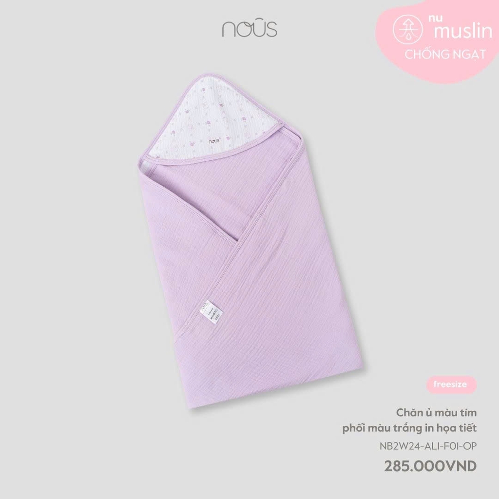 NOUS - Chăn ủ màu tím phối màu trắng in họa tiết - FS - SS25.T8A