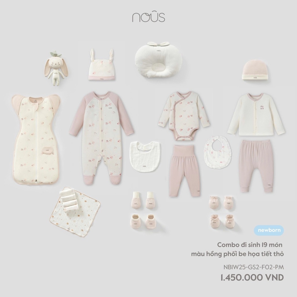 NOUS - Combo đi sinh 19 món màu hồng phối be họa tiết thỏ -SS25.T9A