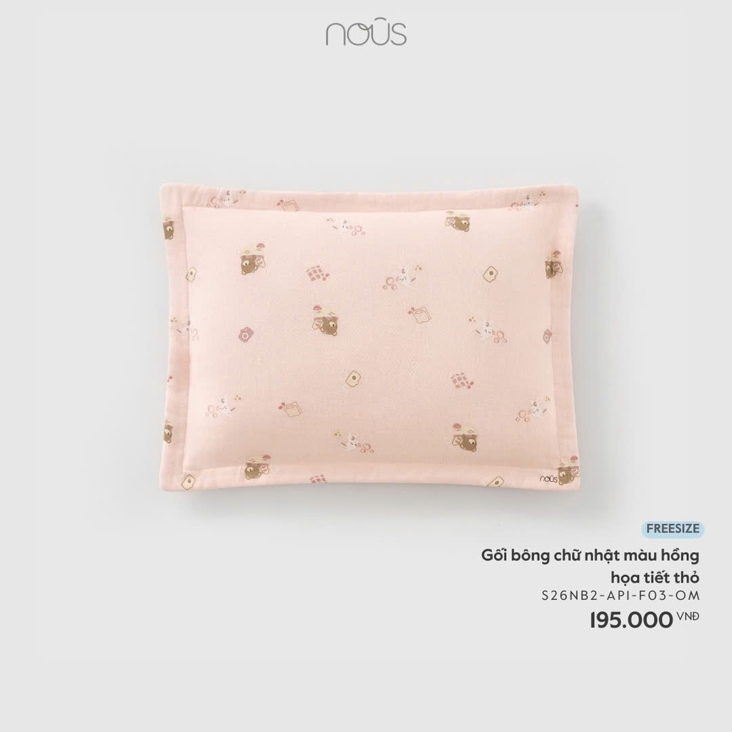 NOUS - Gối bông chữ nhật màu hồng họa tiết thỏ - FS - SS26.T1A