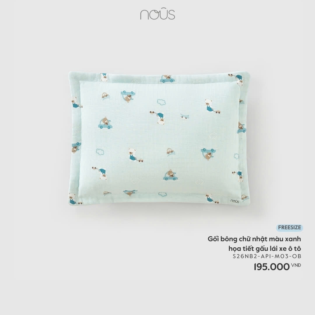 NOUS - Gối bông chữ nhật màu xanh họa tiết gấu lái xe ô tô - FS - SS26.T1A
