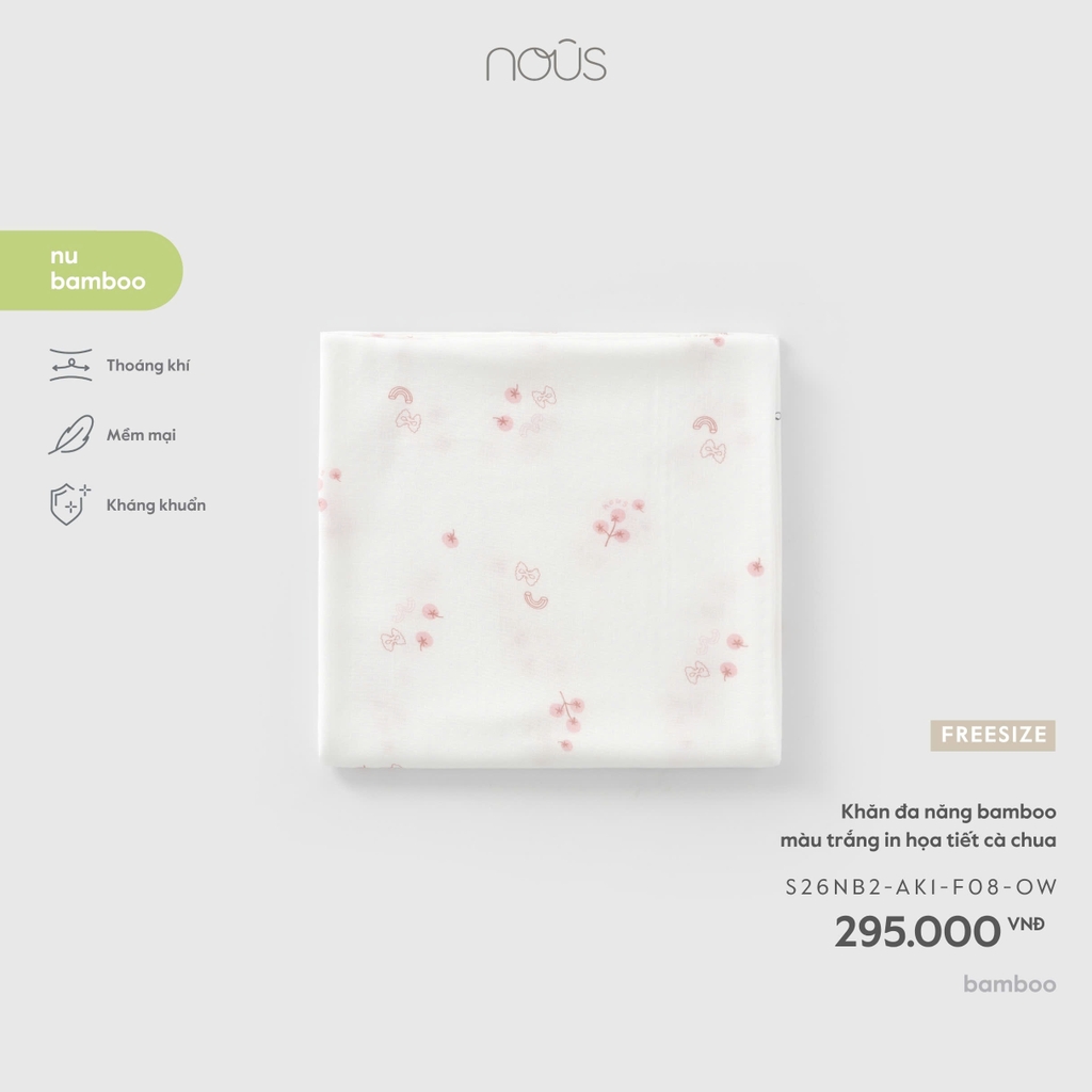 NOUS - Khăn đa năng bamboo màu trắng in họa tiết cà chua - FS - SS26.T5A