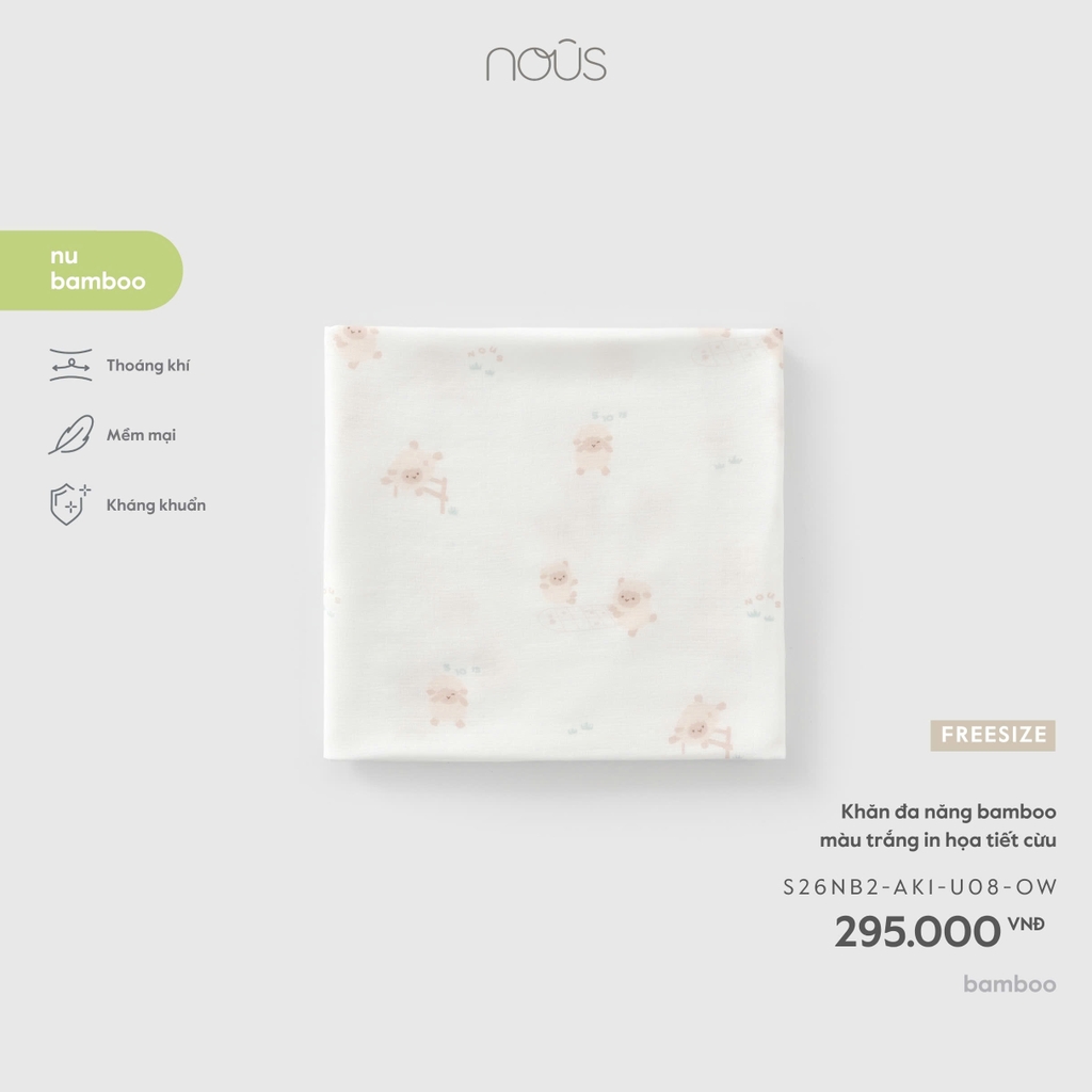 NOUS - Khăn đa năng bamboo màu trắng in họa tiết cừu - FS - SS26.T5A