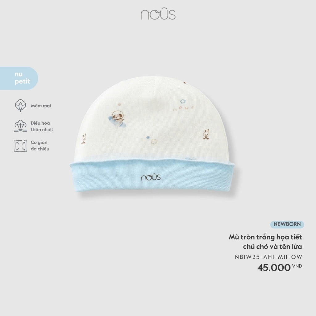 NOUS - Mũ tròn trắng họa tiết chú chó và tên lửa NB - SS25.T11A