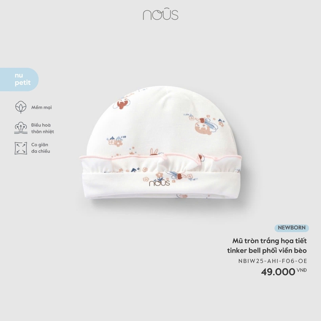 NOUS - Mũ tròn trắng họa tiết tinker bell phối viền bèo NB - SS25.T11A