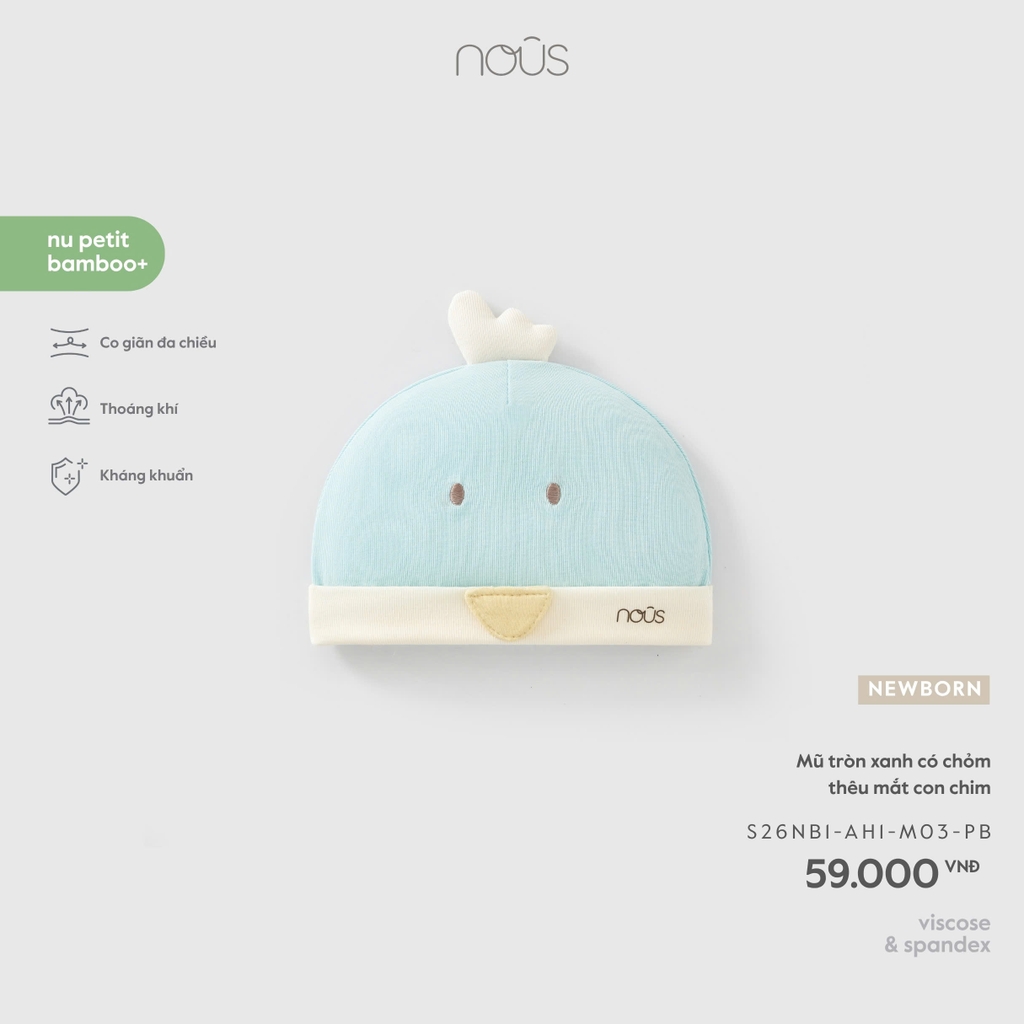 NOUS - Mũ tròn xanh có chỏm thêu mắt con chim - Newborn - SS26.T5A