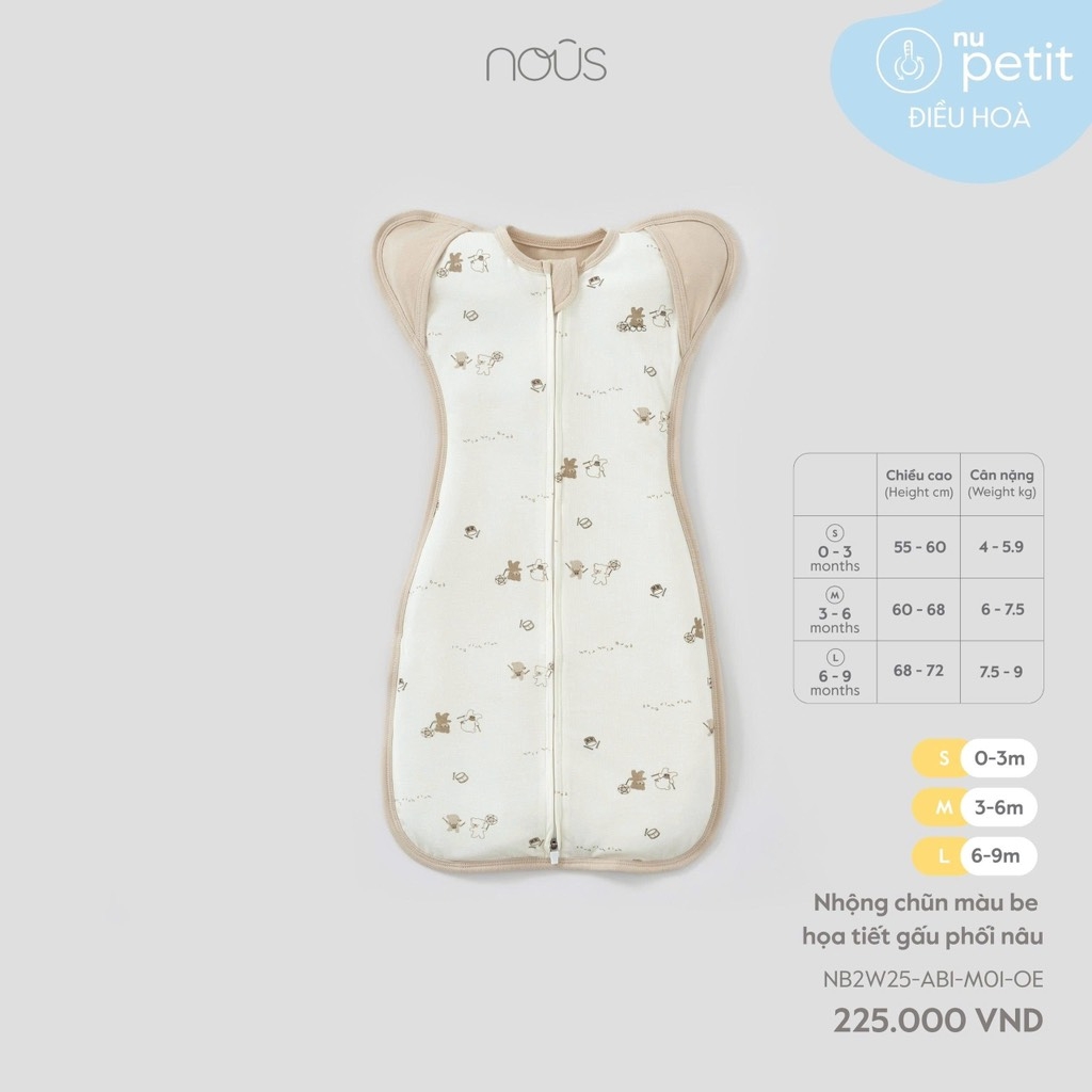 NOUS - Nhộng chũn màu be họa tiết gấu phối nâu -SS25.T9A