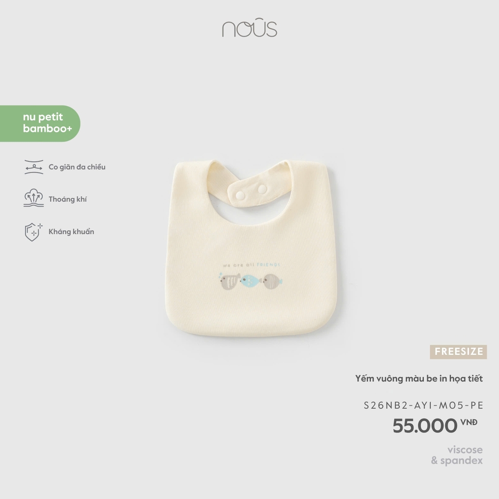 NOUS - Yếm vuông màu be in họa tiết - FS - SS26.T5A