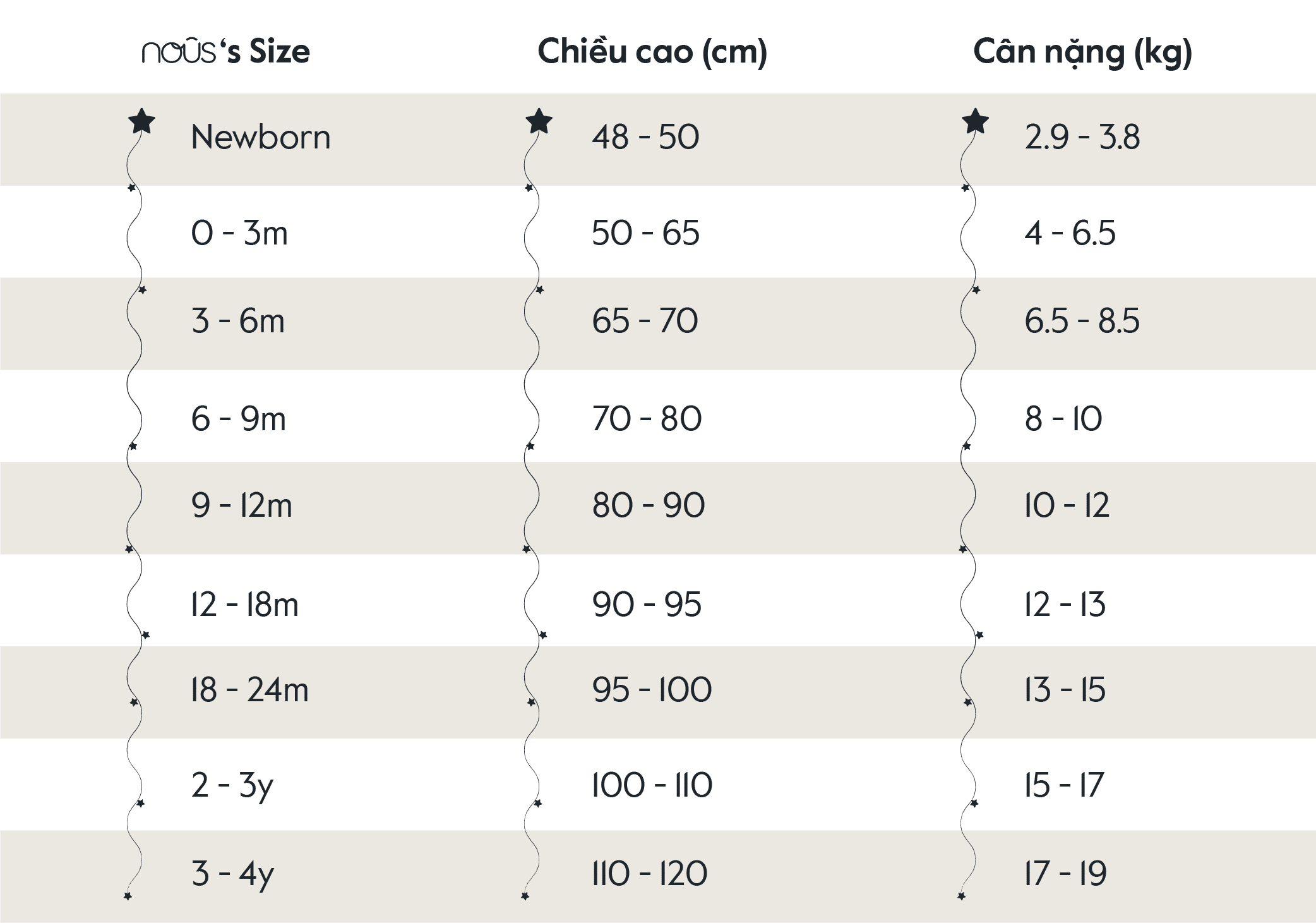 Tổng hợp bảng size hãng Nous, Lapomme, Lecoon, Uala Rogo , Bu , Chaang
